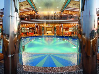 » 2 otvorené bazény na hornej palube + 1 bazén s posuvnou sklenenou strechou + bazén pre deti