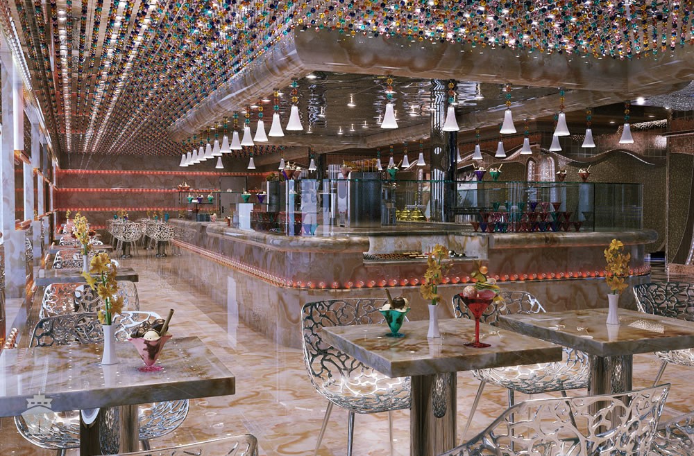 Terasa dlhá 500m so 134m dlhou sklenenou mozaikou, 7.671 umeleckých diel na palube.