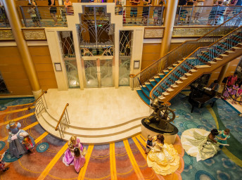 - Magic’s Atrium (centrálna časť lode, cez 3 paluby, s bronzovou sochou “Helmsman Mickey”)