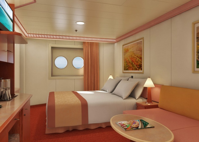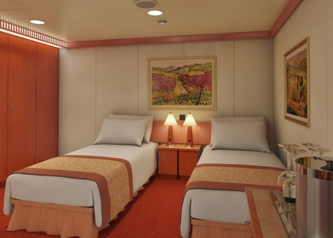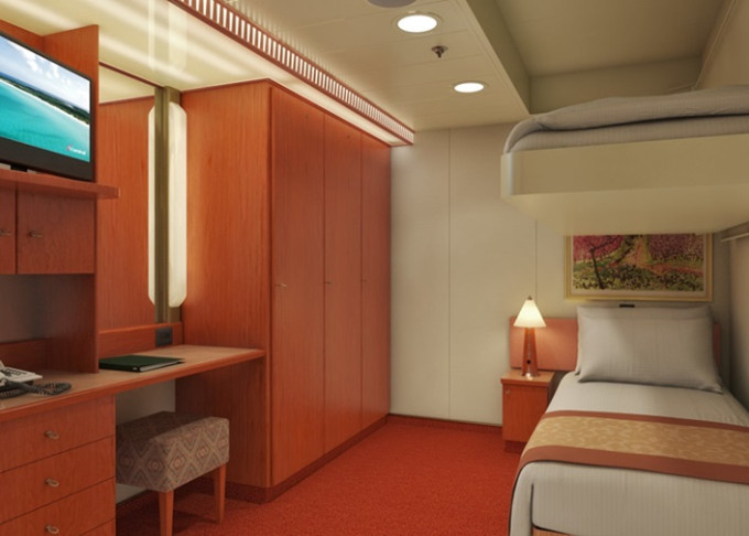Základné vybavenie všetkých kajút: kúpeľňa so sprchou a WC, TV s plochou obrazovkou, telefón, elektrická zásuvka 110 AC, regulovateľná klimatizácia, postele Carnival Comfort, sušič na vlasy, bezpečnostná schránka, mini chladnička