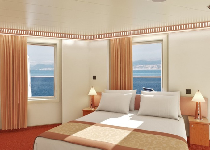 | 6A - Vonkajšia kajuta 20 m². Neotvárateľné okno. 1. paluba vpredu, vzadu. | 700 € 350 € za osobu | ||