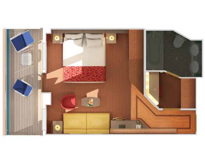| 9C - Kajuta s balkónom Premium Vista 17 m² + rohový balkón 7 m². 6,7,8. paluba vzadu. | 1 904 € 952 € za osobu |