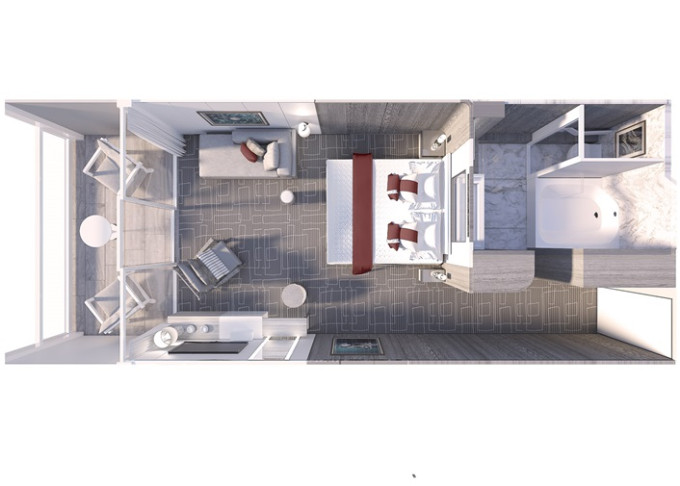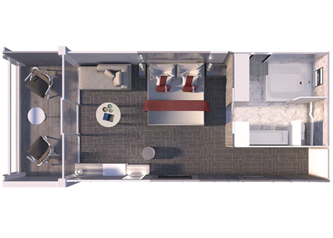 | E3 - Kajuta Edge s balkónom Infinite / obmedzený výhľad 18,5 m² + balkón Infinite 4 m² s obmedzeným výhľadom. 6. až 8. paluba. Max 2-4 osoby. | 2 591 € 2 591 € za osobu | ||