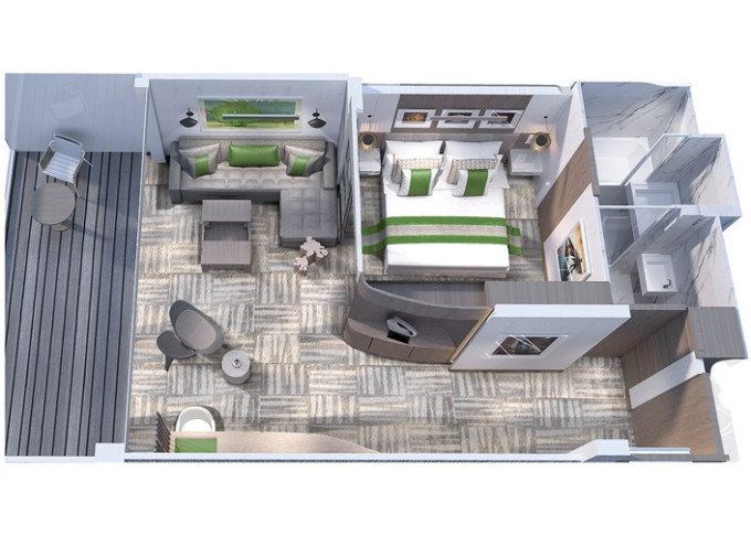| CS - Celebrity Suite 37 m² + balkón 9 m². 11,12. paluba vpredu. Max 4 osoby. Výhody Suite. | 13 756 € 3 439 € za osobu | ||