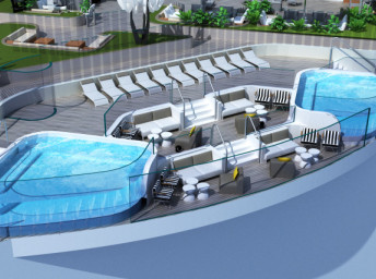 | SS - Sky Suite Sunset 21 m² + balkón 15 m². 7. až 12. paluba na korme. Vírivka. Max 2 osoby. Výhody Sky Suite. | 10 083 € 3 361 € za osobu | ||