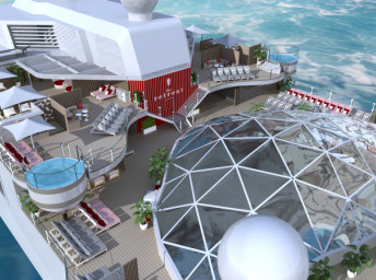 | EV - Edge Villa 69 m² + terasa s vírivkou 19 m². 2-poschodový apartmán. Max 4 osoby. 15,16. vpredu. paluba. Výhody Suite. | 20 468 € 5 117 € za osobu |