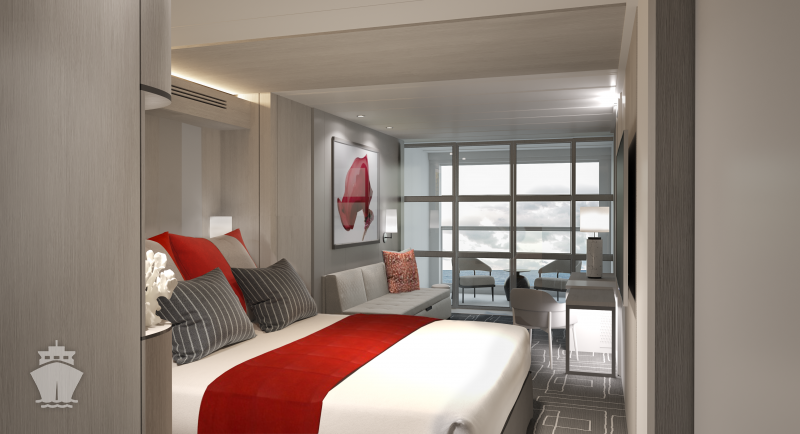 - Kajuty sú umiestnené v blízkosti lodného Spa. K ich vybaveniu patrí posilnený systém vzdušnej filtrácie, posteľ Queen-Size (v kategóriách Edge King-Size), veľké zasúvacie sklenené dvere, exkluzívne posteľné prádlo eXhale®, veľkorysé skladovacie priestory.