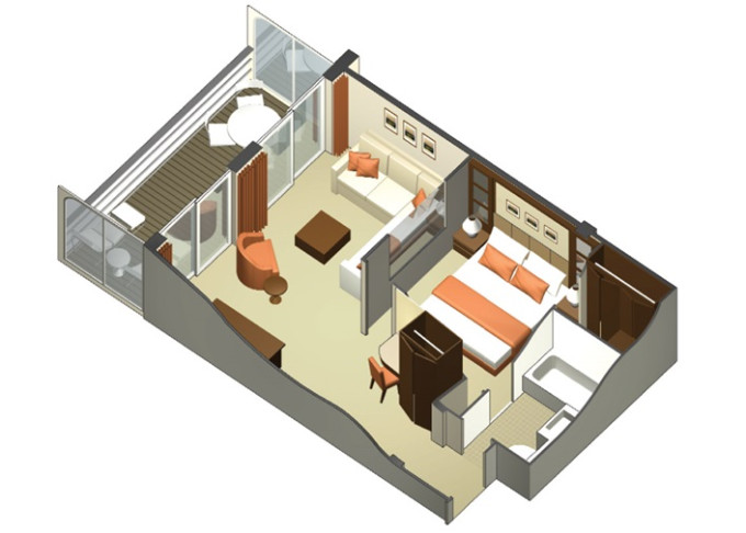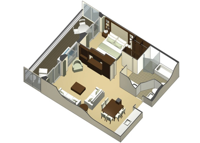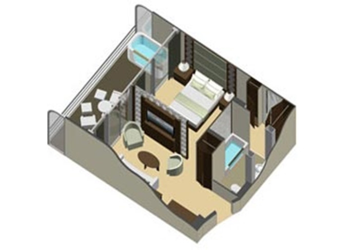 CS - Celebrity Suite 37 m² + balkón 9 m². 10,11. paluba. Max 4 osoby. Výhody Suite. 3 627 € 1 209 € za osobu