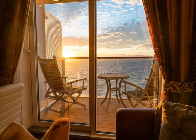 V1 - Kajuta s balkónom Prime 18 m² + balkón 5 m². 6. až 9. paluba. Max 2-4 osoby. 1 000 € 1 000 € za osobu