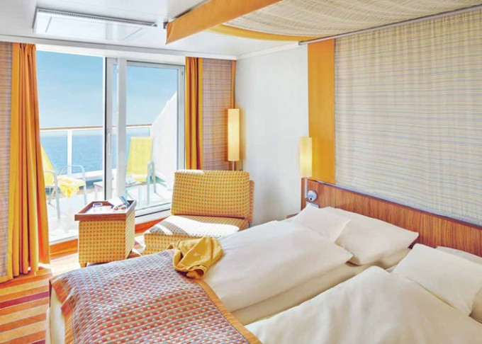 BA - Kajuta s balkónom PREMIUM 14.5-20 m² + balkón 3 m². Max 3 osoby. 6. až 9. paluba. Cenový model Premium. 4 960 € 2 480 € za osobu