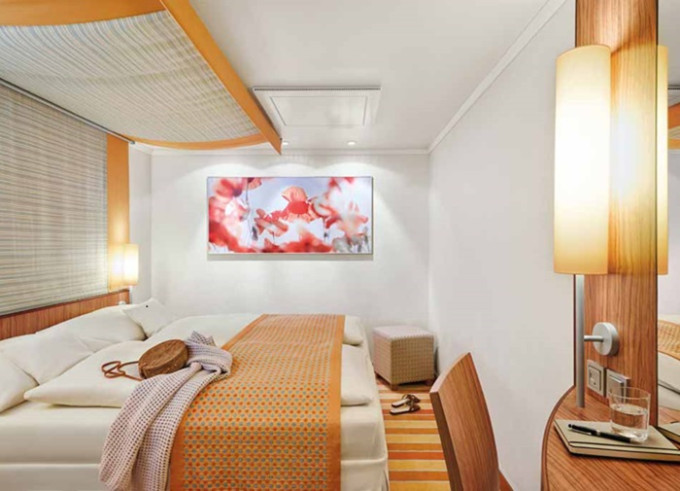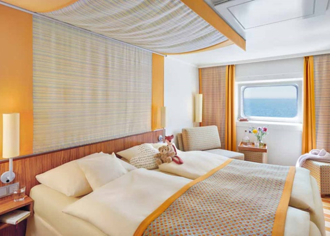 CA - Vonkajšia kajuta PREMIUM / obmedzený výhľad 14-16,5 m². Neotvárateľné okno / obmedzený výhľad. 6. paluba. Max 2 osoby. Cenový model Premium. 3 220 € 1 610 € za osobu