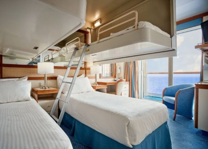 OZ - Vonkajšia kajuta / obmedzený výhľad 15-16,5 m². Neotvárateľné okno s obmedzeným výhľadom. Max 2 osoby. 2 252 € 1 126 € za osobu