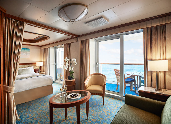 B4 - Kajuta s balkónom Premium 21,5 - 27,5 m² (vrátane balkóna). Max 2-4 osoby (2 horné lôžka). 5 418 € 2 709 € za osobu