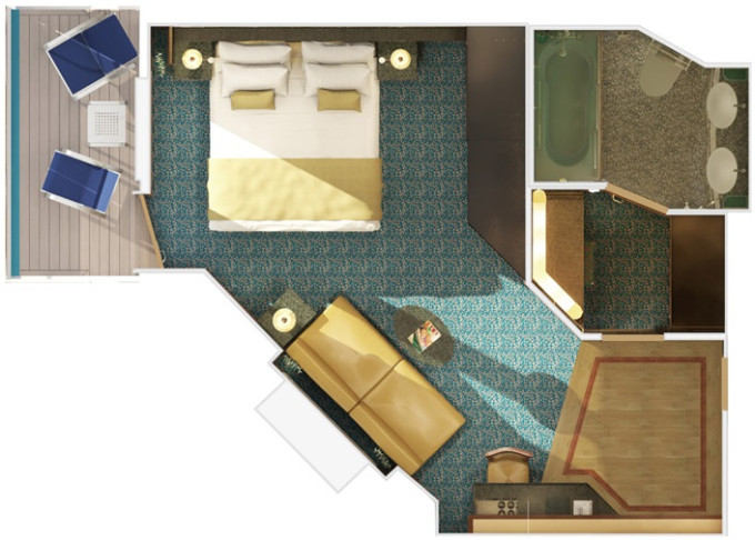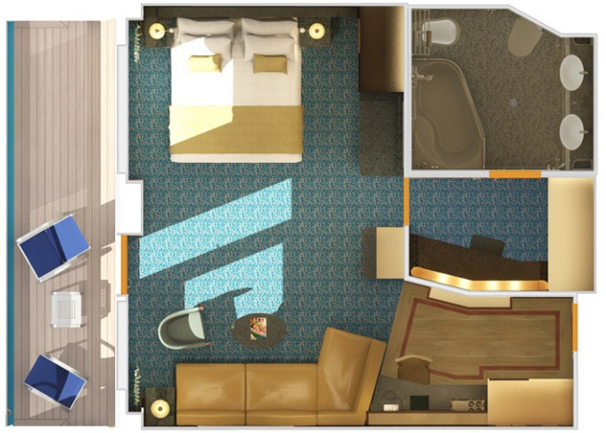 SS - Suite Cloud 9 Spa 25 m² / balkón 6 m². 11. paluba vpredu. Max 3 osoby. Výhody Suite. Voľný vstup do Spa a balíček Cloud 9 Spa. 3 408 € 1 704 € za osobu
