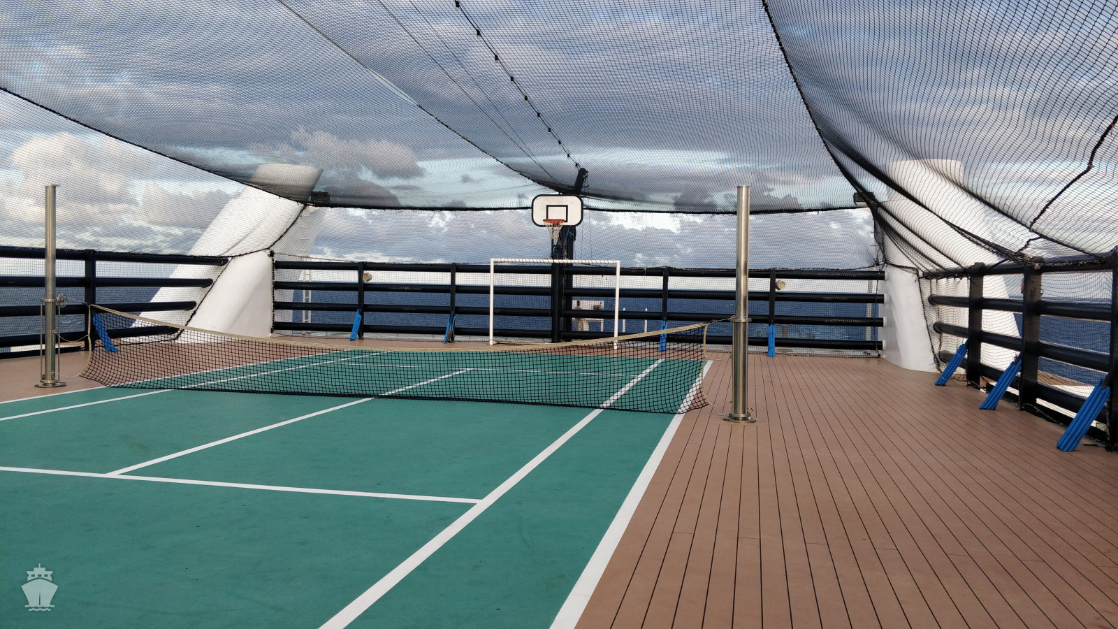- Športové aktivity na otvorených palubách (jogging, basketbal, futbal, tenis), bazény a ležadlá