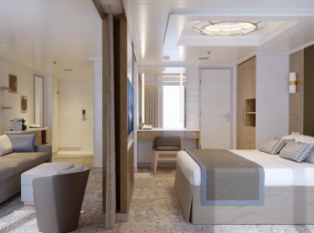 S0 - Signature Sky Suite 117 m² (vrátane 14 m² balkónu). 16. paluba vzadu. Max 5 osôb, Výhody Signature Suite. 13 290 € 6 645 € za osobu