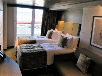 Vo všetkých kajutách sa nachádza regulovateľná klimatizácia, safe, kúpeľňa so sprchou, sušič na vlasy, telefón, interaktívna Tv s plochou obrazovkou, minibar. Oddelené postele sa na požiadanie dajú spojiť do manželskej.