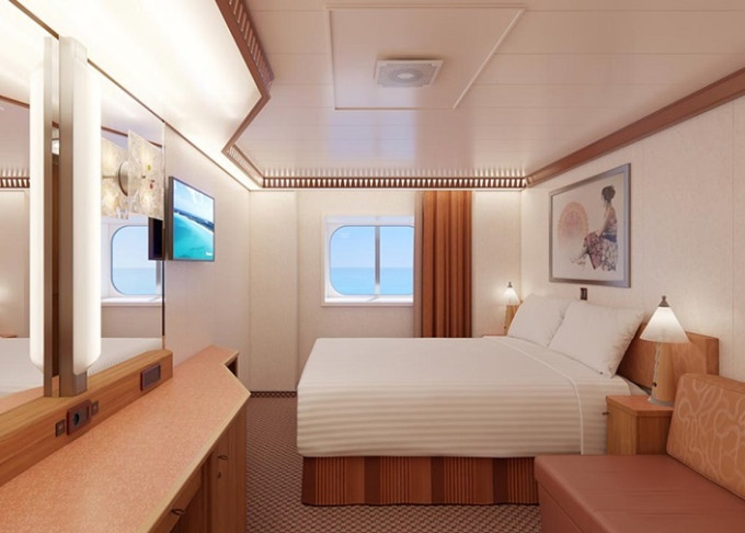 · 90 kajút s neotvárateľným oknom a výhľadom na oceán