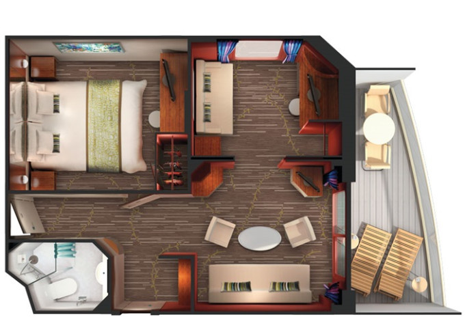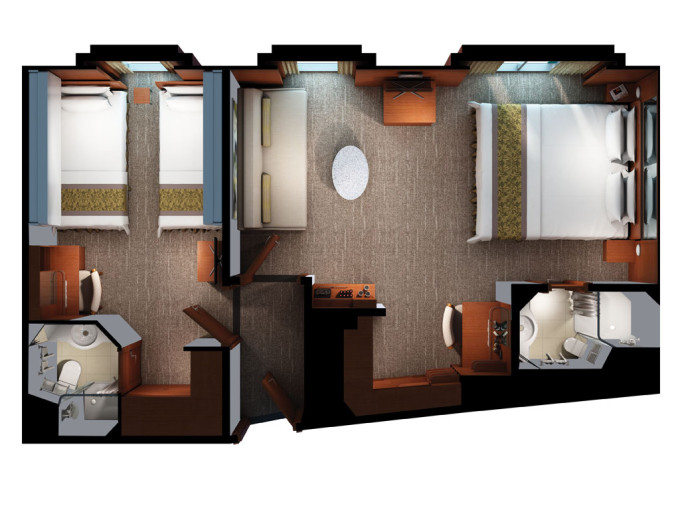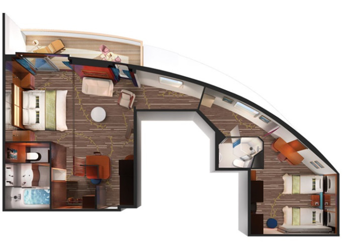 | S4 - Deluxe Family Suite od 56 m² / balkón 9 m². 9. paluba - vpredu. Max 5 osôb. Výhody Suite. | 17 388 € 8 694 € za osobu | ||