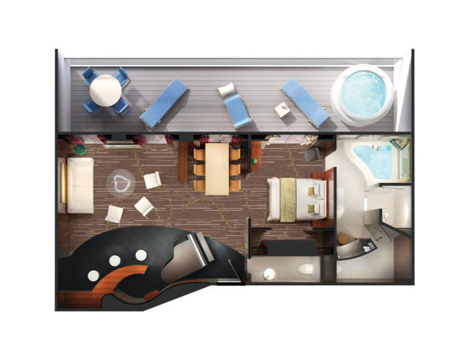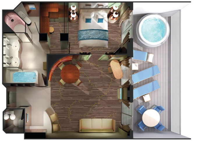 | S5 - Deluxe Owner's Suite 128 m² / balkón 45 m². 12. paluba - vpredu. Max 4 osoby. Výhody Suite. | 15 938 € 7 969 € za osobu | ||