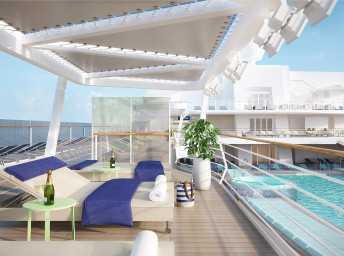 | SUHO - Himmel & Meer Suite 42 m² + prekrytá terasa 29 m² na poschodí so stolom, ležadlami a s hojdacou sieťou. 15. paluba. Max 4 osoby. Výhody Suite. | 19 196 € 4 799 € za osobu |