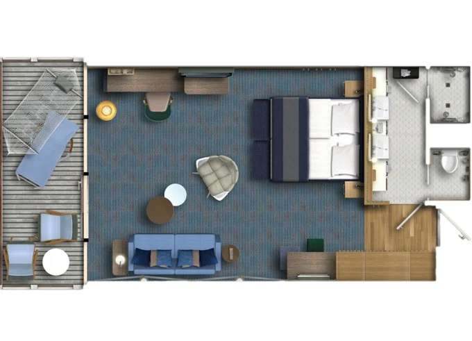 JBAO - Junior Suite s balkónom 26 m² + balkón 7 m² so stolom. 10,11. paluba. Max 4 osoby. Výhody Junior Suite. 4 998 € 2 499 € za osobu