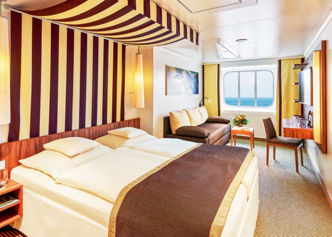 MA - Vonkajšia kajuta PREMIUM 22-23 m². Neotvárateľné okno. 4. paluba. Max 3 osoby. Cenový model Premium. 7 480 € 3 740 € za osobu