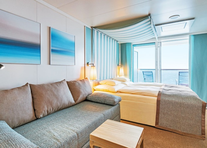 JA - Junior Suite PREMIUM od 32 m² + balkón od 12 m². 8,9. paluba. Max 4 osoby. Cenový model Premium + výhody Junior Suite. 17 320 € 8 660 € za osobu